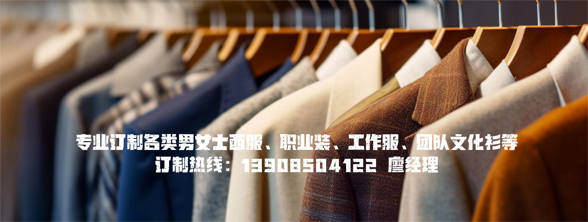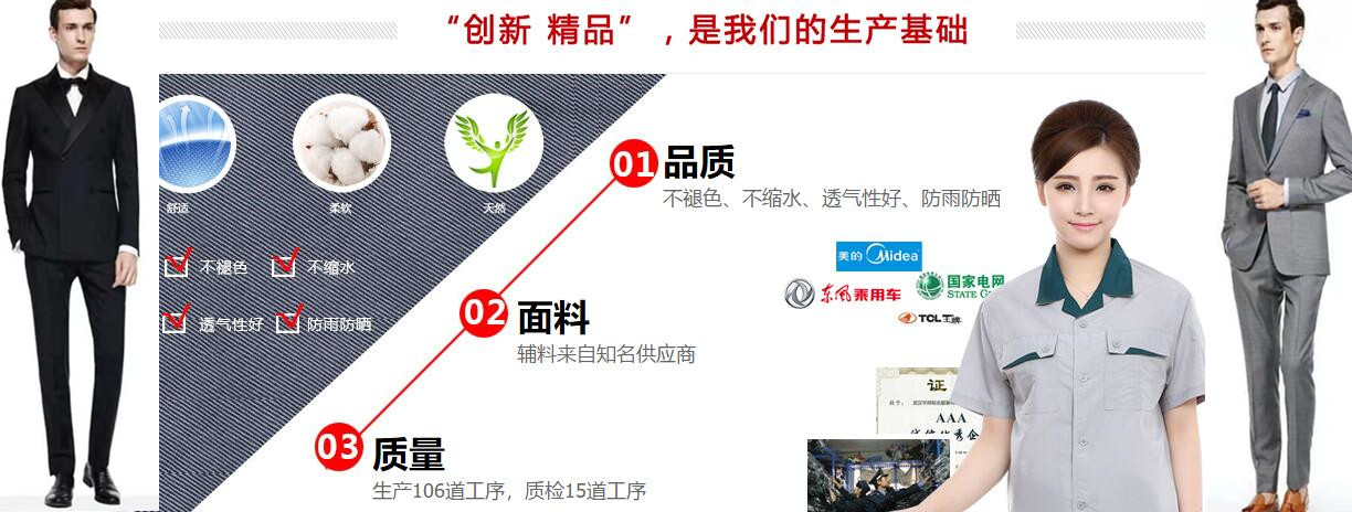 專業訂做高端定制西服、企業員工制服、酒店 、酒樓、KTV、工廠 、公司企業 、銷售案場 、物業、學校等……只要您一個電話,我們會完美的為你解決服裝需求,為您企業塑造完美形象。
